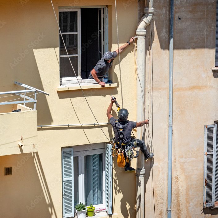 - Remplacement et Réparation d’éléments en façade (descentes eaux pluviales, volets, etc…)